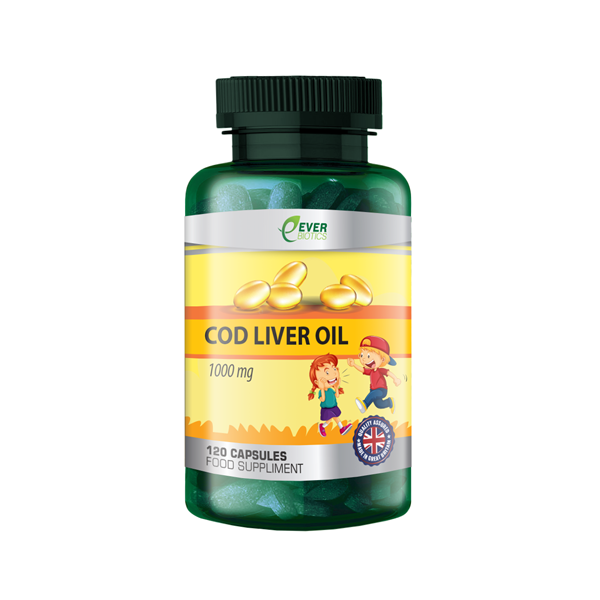 Everbiotics Cod Liver Oil is high in essential omega-3 fatty acids and is also an excellent source of Vitamins A and D. Contains the essential fatty acids DHA and EPA. DHA contributes to the maintenance of normal brain function and vision. EPA and DHA contribute to the normal function of the heart.